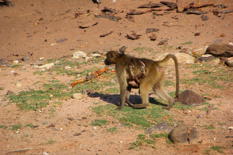 - Many chacma baboons – collectively known as a ‘troop’ or a ‘congress’. These are omnivores and will eat anything (we certainly found this out in Zambia!). Baboons do not compete with other males for their female counterparts as they will happily have multiple mates at any given time. The females carry their babies under their stomachs for easy suckling and safety from predators.