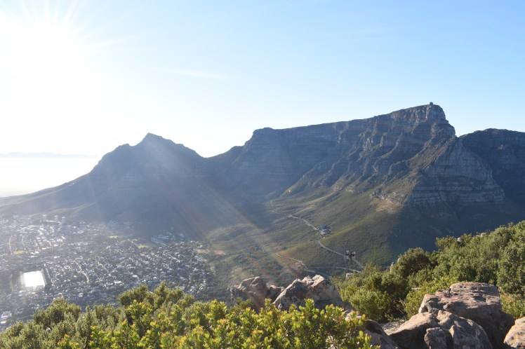 Two of us decided to ascend the mountain together and we started at around 5:30am to beat the heat of the day. I believe that this was a wise choice, because it wasn’t too overcrowded and I certainly got hot enough, even at that ungodly hour! Climbing up the 669 metres took us around an hour and though I’m sure I slowed my companion down, we enjoyed corkscrewing around the mountain, with unbeatable views at every angle. We could see the ocean, the Twelve Apostles, Table Mountain and the City Bowl far below (also described as a natural amphitheatre because of its shape when viewing it from the mountains above).