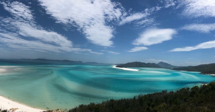 We boarded the catamaran once more and it sped us past Daydream, Hamilton and Hook islands en route to the largest of the 74 islands, Whitsunday Island itself, which boasts the incredible Whitehaven Beach (with seven kilometres of dazzling white sand, it is regularly voted Australia’s best beach). Here we hiked to the lookout over the breathtaking Hill Inlet with stunning views of the azure waters below.