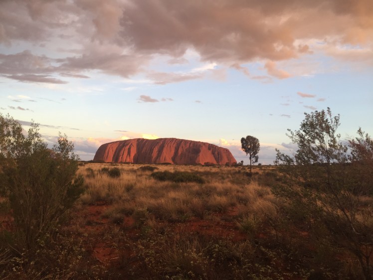 After a 3:50 am wake up, we sauntered sleepily onto the coach in the dark and drove to “Ayers Rock” to catch the sunrise. Unfortunately, an overcast day and an abundance of clouds meant that it wasn’t quite as impressive as it may have been, but it was still a cool thing to experience.