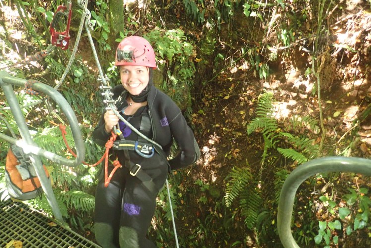 Those of us partaking in this five hour excursion got kitted out into wetsuits, harnesses and helmets and began practising the abseil on land before descending into the caves.