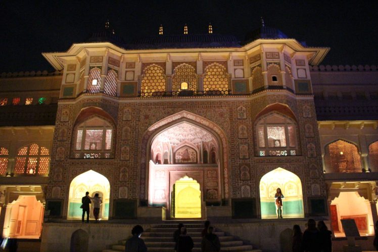 As evening fell, it was time to acquaint ourselves with some of the sites of Jaipur. We had the choice between taking an orientation walk around the Old City or viewing the Amber Fort, which we were told is the only fort one can explore at nighttime. We therefore chose to make the most of the opportunity to see the Amber Fort at night.