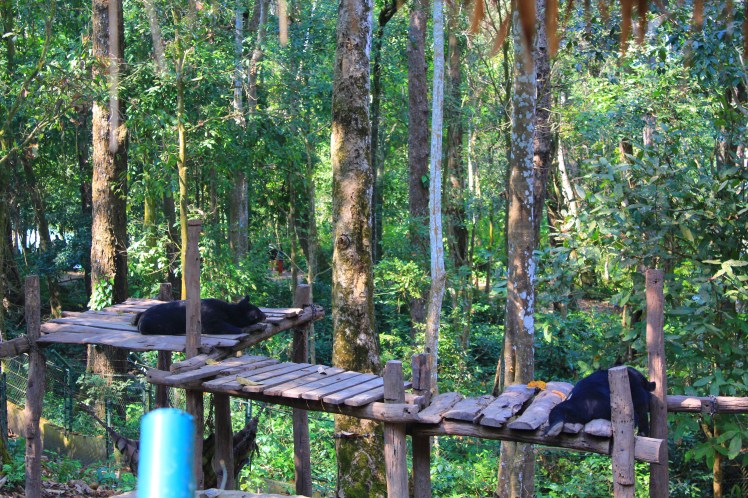 At the foot of the waterfall, we found the Tat Kuang Si Bear Rescue Centre, home to sun and moon bears who were found in the wild around Southeast Asia. The centre rescued the bears, because people were keeping them as pets or taking them to bile farms and using the bile in their stomach for medicinal purposes as they believed it cured cancer. However, there is no scientific evidence of this and as a result, the bears are now endangered.