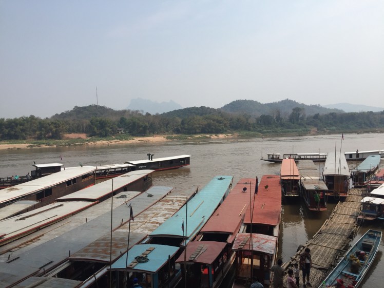 After a five hour bus journey to the Thai town of Chiang Khong, we took a local boat across the Mekong River, where there is a natural border between the two countries. Here, we met our new tour guide, Kami, who was from Laos and was very knowledgeable on the history of his country, supplying us with fascinating information as we sailed along.