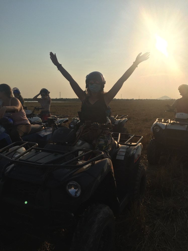 Fortunately, I was no longer quite so inept at quad biking and got the hang of it quickly. It was exhilarating! It was also one of my first experiences wearing a face mask (to stop us inhaling dust and dirt from the road), that would later become the norm worldwide.