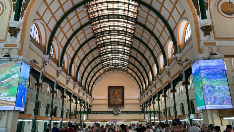 We then visited the Central Post Office. Situated next to the Notre-Dame, the CPO is another preserved remnant of French colonial times, which allowed us to imagine life in Vietnam during the Indochinese Empire. The famous civil engineer and designer of the Eiffel Tower, Gustave Eiffel, is said to have designed the first version of the Central Post Office, but it was rebuilt by French architects Villedieu and Foulhoux in 1886.