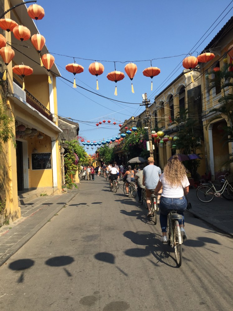 Once fed, it was time to explore Hội An. We rode bikes into the UNESCO-listed Old Town and got our first glimpse of the city’s sheer beauty. It is exceptionally well-preserved and was an important trading port up until the 19th century, receiving goods such as silk and silver from China and Japan.