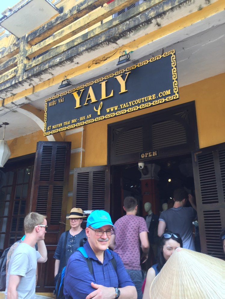 The last stop on our cycle ride around the Old Town was to Yaly Couture. Hội An is famous for its bespoke tailor shops and this one came highly recommended by our trip manager. One of the Yali staff members told us that they began trading around 25 years ago, with a small sewing stall. Their high quality clothing became renowned by locals and tourists alike, and their owner, Ms. Quynh, was able to focus her passion on expanding her business. Yaly now hire more than 300 tailors, designers and craftsmen, creating jobs for the locals and impressing tourists with their designs.