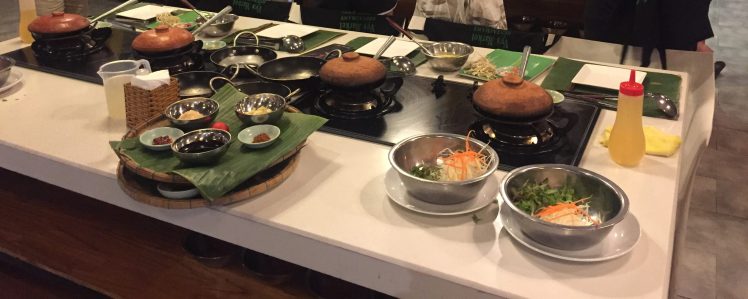 Once we arrived at Vy’s Market Restaurant & Cooking School, we admired their own rainbow coloured lights in the lively restaurant, and then we walked straight through the mass of diners and to an airy room upstairs, which was laden with benches, ingredients, and a smiley instructor called Ms. Moon.
