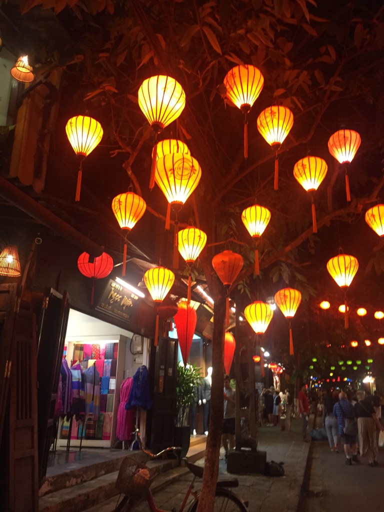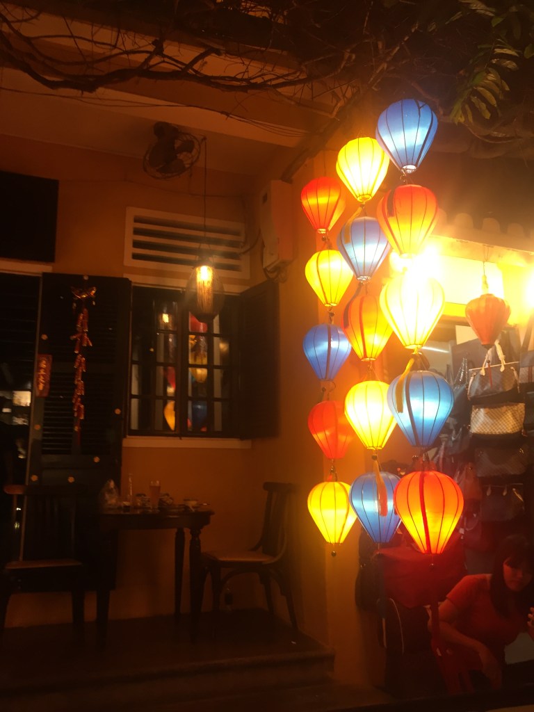 We walked to Vy’s Market Restaurant & Cooking School and en route we stopped to appreciate the sheer beauty of Hội An at night, with bright, colourful lights in every direction.