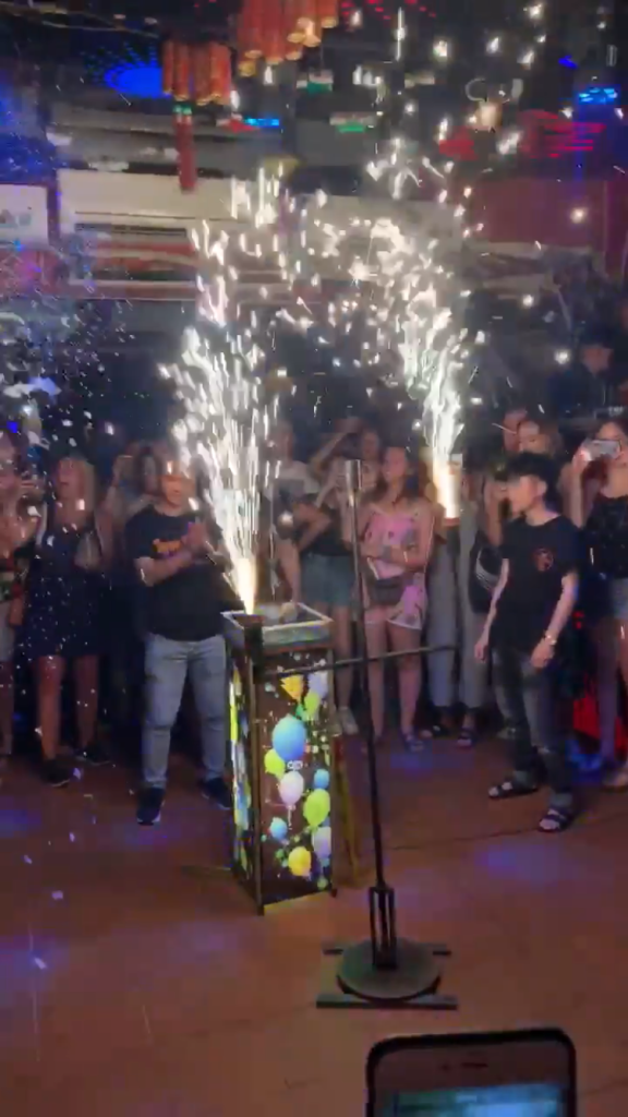 Admiring the bar’s grand birthday celebrations for one of their patrons