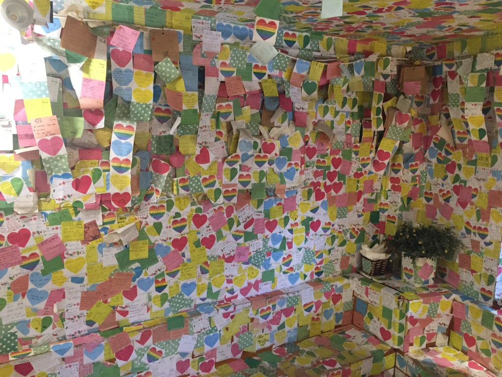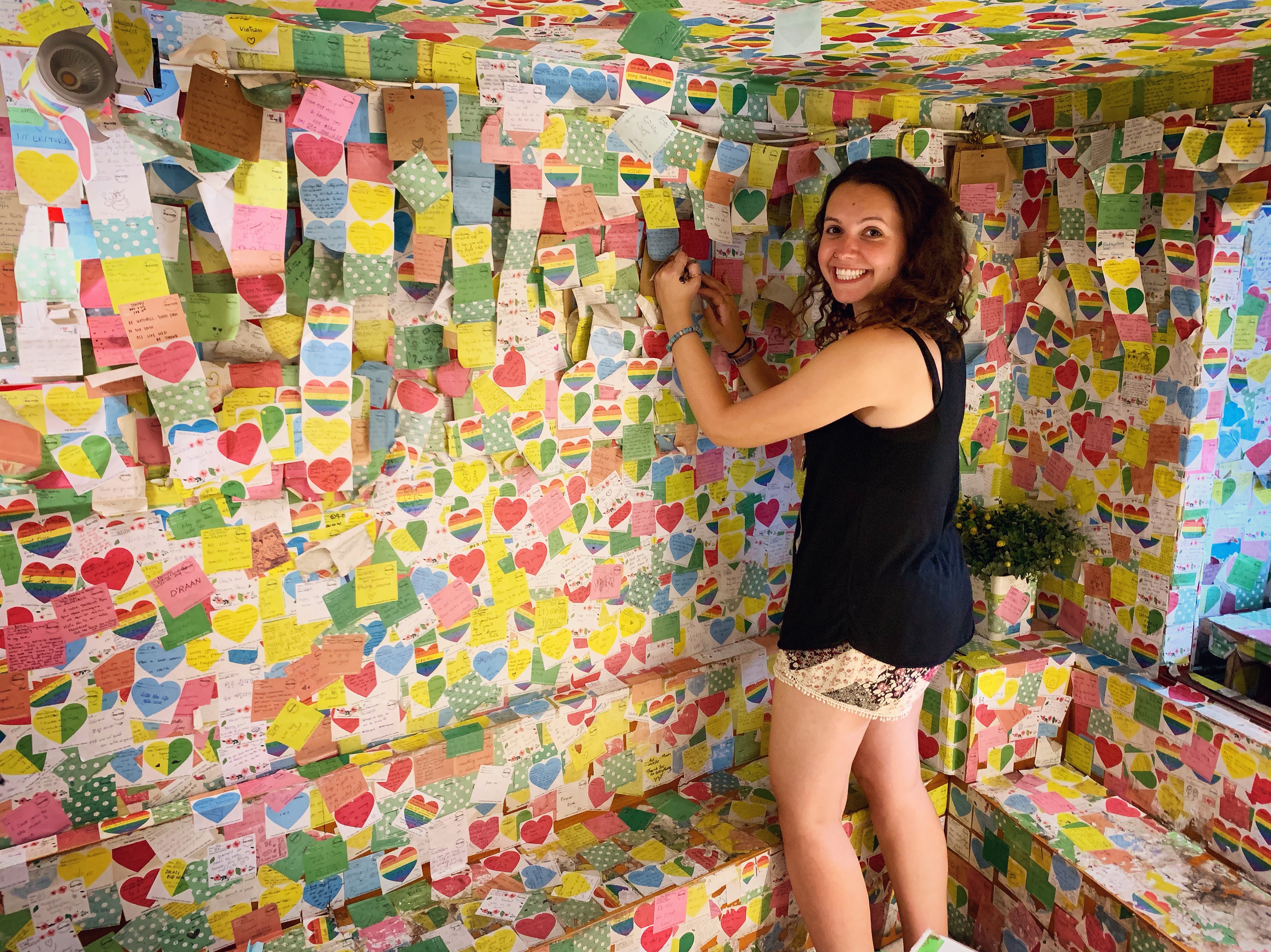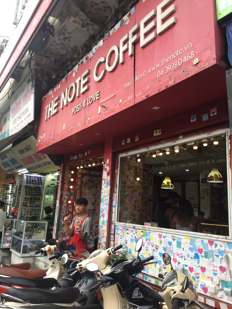 Though I wasn’t a huge fan of the egg coffee, it was interesting to try this delicacy, and also be with my tour friends in such amazing surroundings, with rainbow-coloured post-it notes in every direction. Some of our tour buddies who had left us in Cambodia had even written us a post-it from their time in Vietnam, which was a challenge to find, but worth it to see their lovely words!