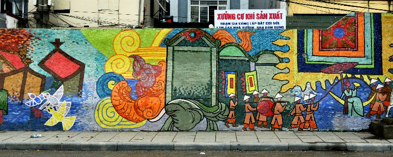 Sinh informed us that the city of Hanoi is one thousand and nine years old and to celebrate its thousandth year they made a mosaic mural telling the story of Vietnam and its people. It consequently won a Guinness World Record for being the longest ceramic mosaic wall.