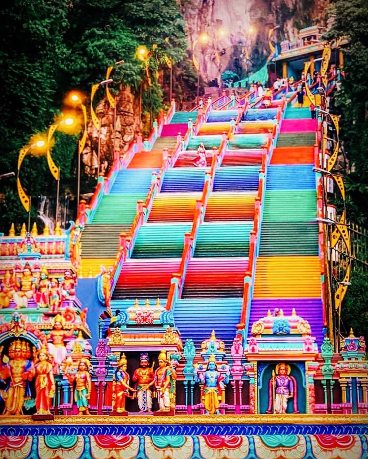 Our tour guide told us that Batu translates to mean ‘stone’ and there are nine stone caves in the vicinity we were about to visit. We were only going to the main cave though, and there is a Hindu Temple located at the top. There are 272 steps up to the cave and the temple, but this incline has been made so much more enjoyable as the steps were painted in bright rainbow colours only the year before. I was very excited to see the stunning staircase.