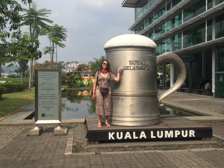 On our way back to the city, we stopped off at Royal Selangor Pewter. Here I learnt that pewter (I hadn’t previously heard of it) is a malleable metal alloy made from a mix of tin, antimony and copper. Royal Selangor Pewter is the largest and most renowned manufacturer and retailer of pewter and the Malaysians are evidently very proud of this, with our guide showing us the many trophies they have won. We toured the factory and gained an understanding of pewter and its uses, seeing employees casting, polishing, finishing and hammering the metal. We were even given some lemonade in a pewter cup!