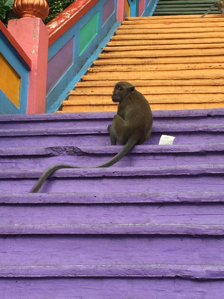 There were monkeys all over the steps. They either liked the rainbow colours or knew that tourists carried food!